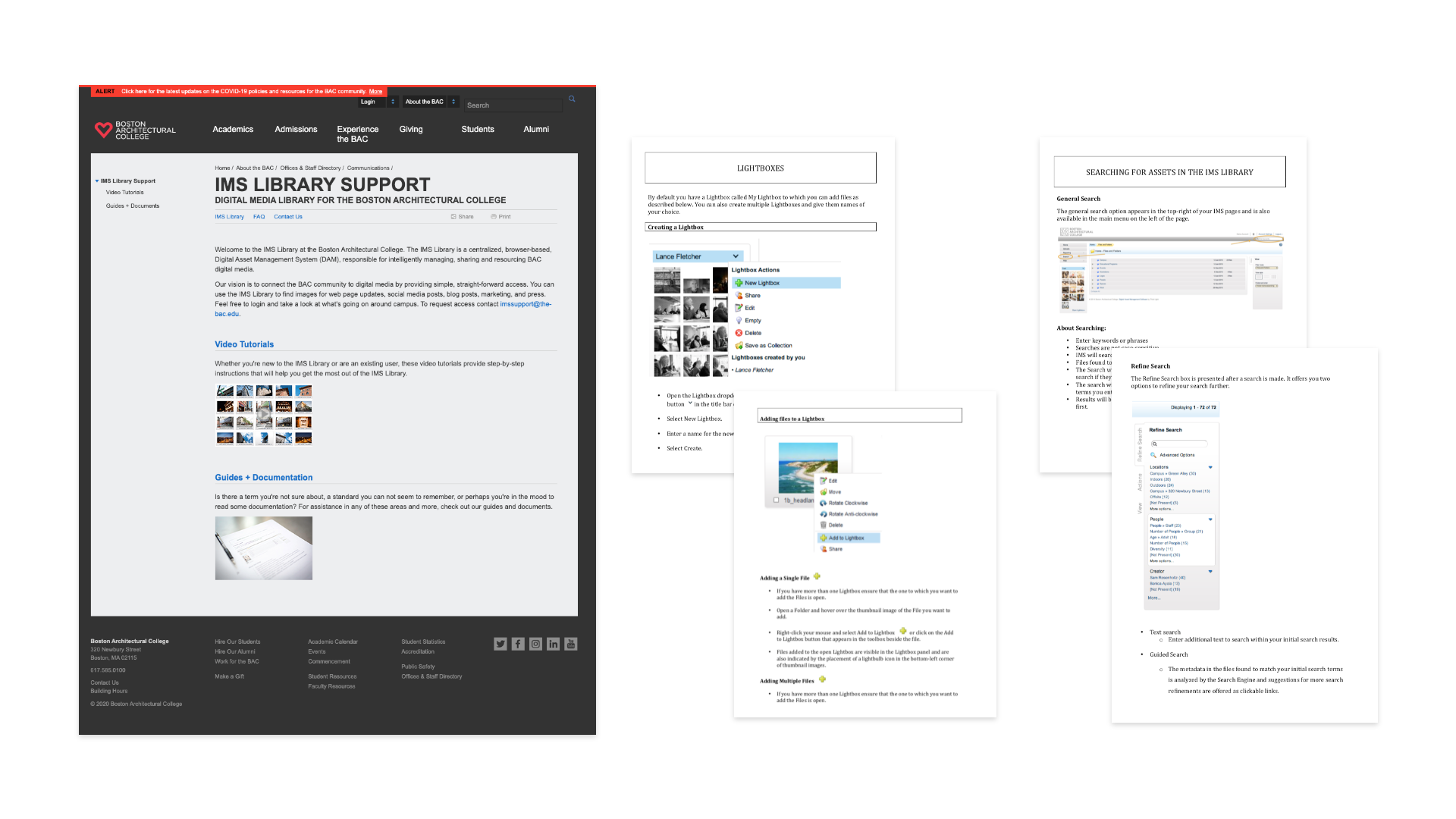 At the time of this project, I was the lead photographer and web content manager at the Boston Architectural College (BAC). Being on the marketing team, I knew first hand the difficulties we had working with digital assets and how it affected folks across the organization, both internally and externally. So I set out to identify a centralized repository system. I wasn't exactly sure what system I was looking for – there are a lot of content management systems out there. What I did know was that there had to be a better way to manage our digital assets. So I jumped in!