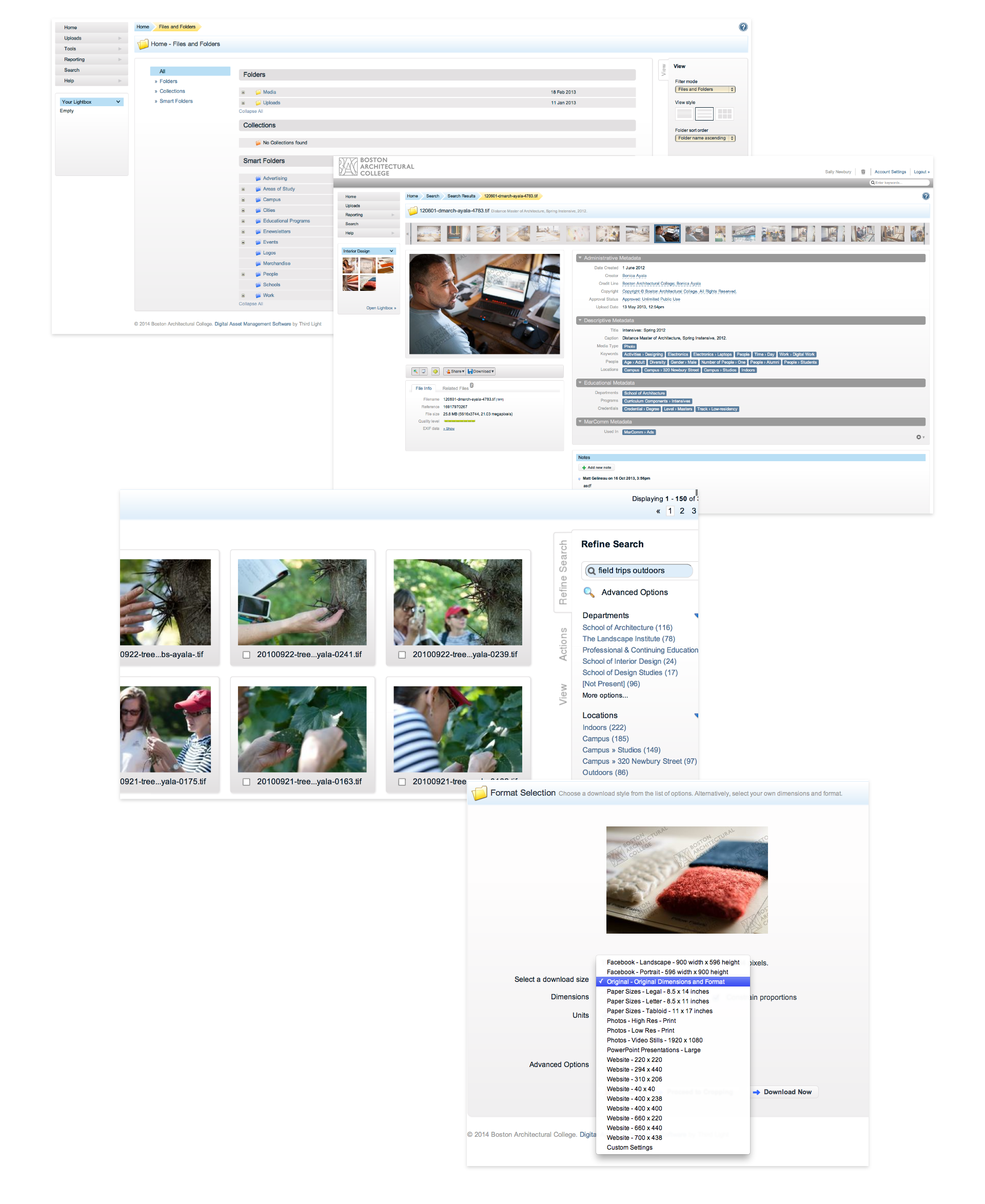 The Boston Architectural College was rapidly creating digital assets – images, videos, audio files, documents, creative files, logos, and more. These assets were stored in various folders on local servers, in multiple Dropbox accounts, across employee computers, and individual hard drives. This was causing costly obstacles in marketing, brand management, and creating frustrating delays on creative projects across the BAC.